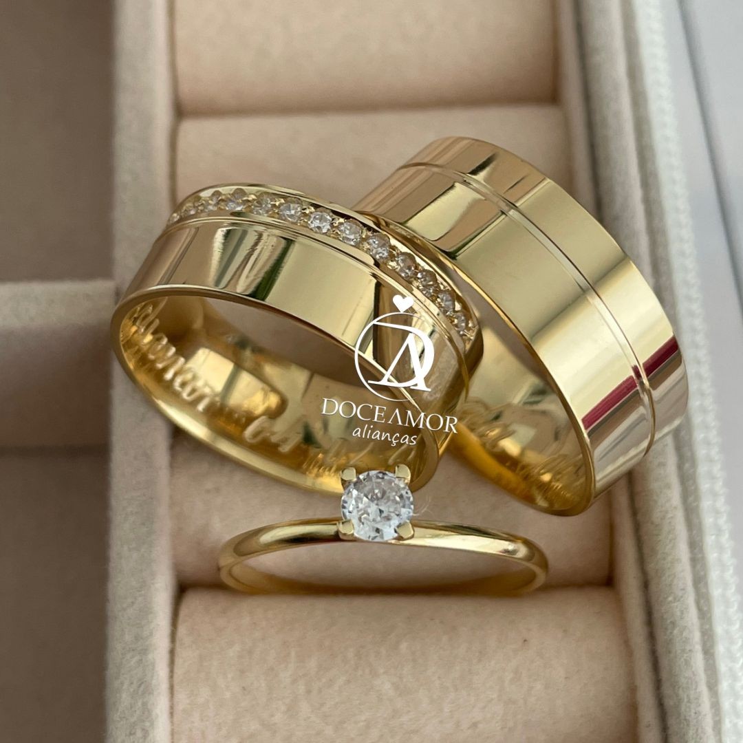 Detalhes: Aproximadamente 15 pedras de zircônias na aliança Feminina (meia Volta)