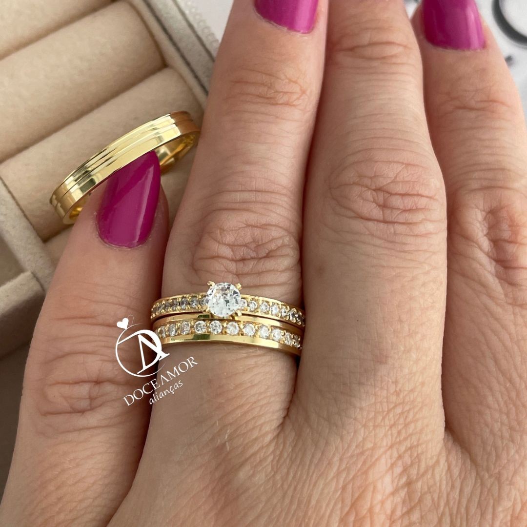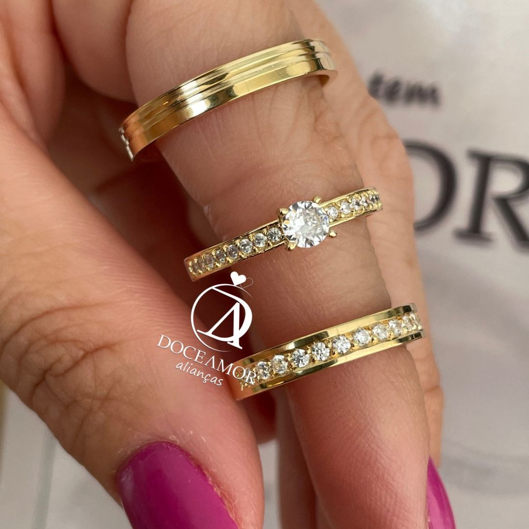 Detalhes: 15 pedra de zircônia na aliança feminina (Meia Volta)