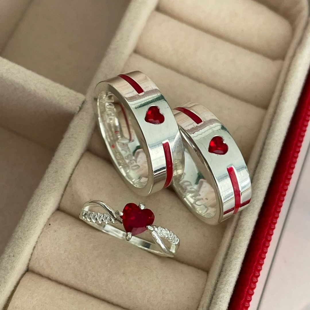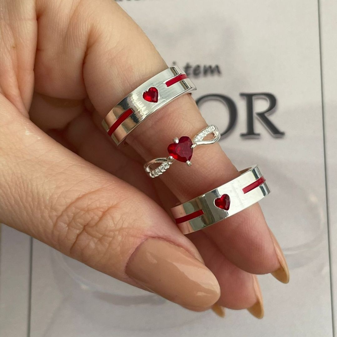 Detalhes : Friso com esmalte vermelho + pedra de coração