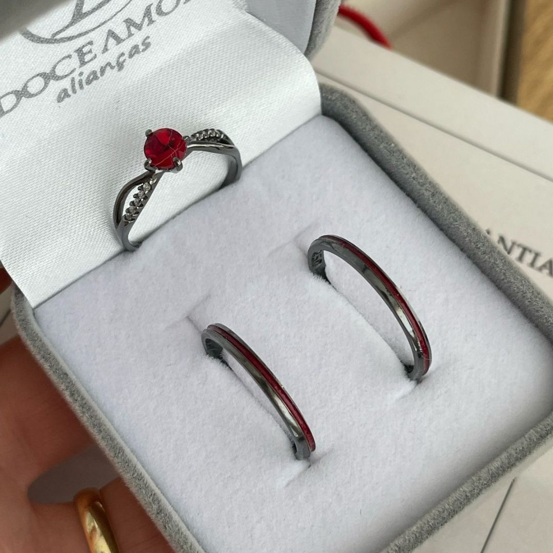 Detalhes : Corte volta toda nas peças com esmalte nas duas alianças