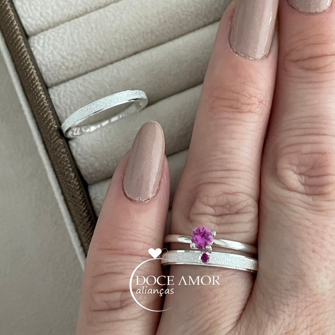 Alianças em Prata 950- 2mm - Clara - Solitário Tradicional