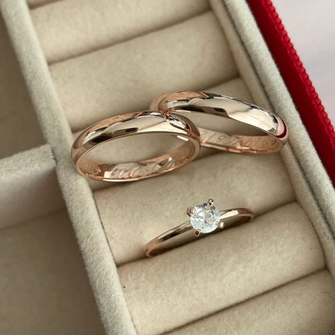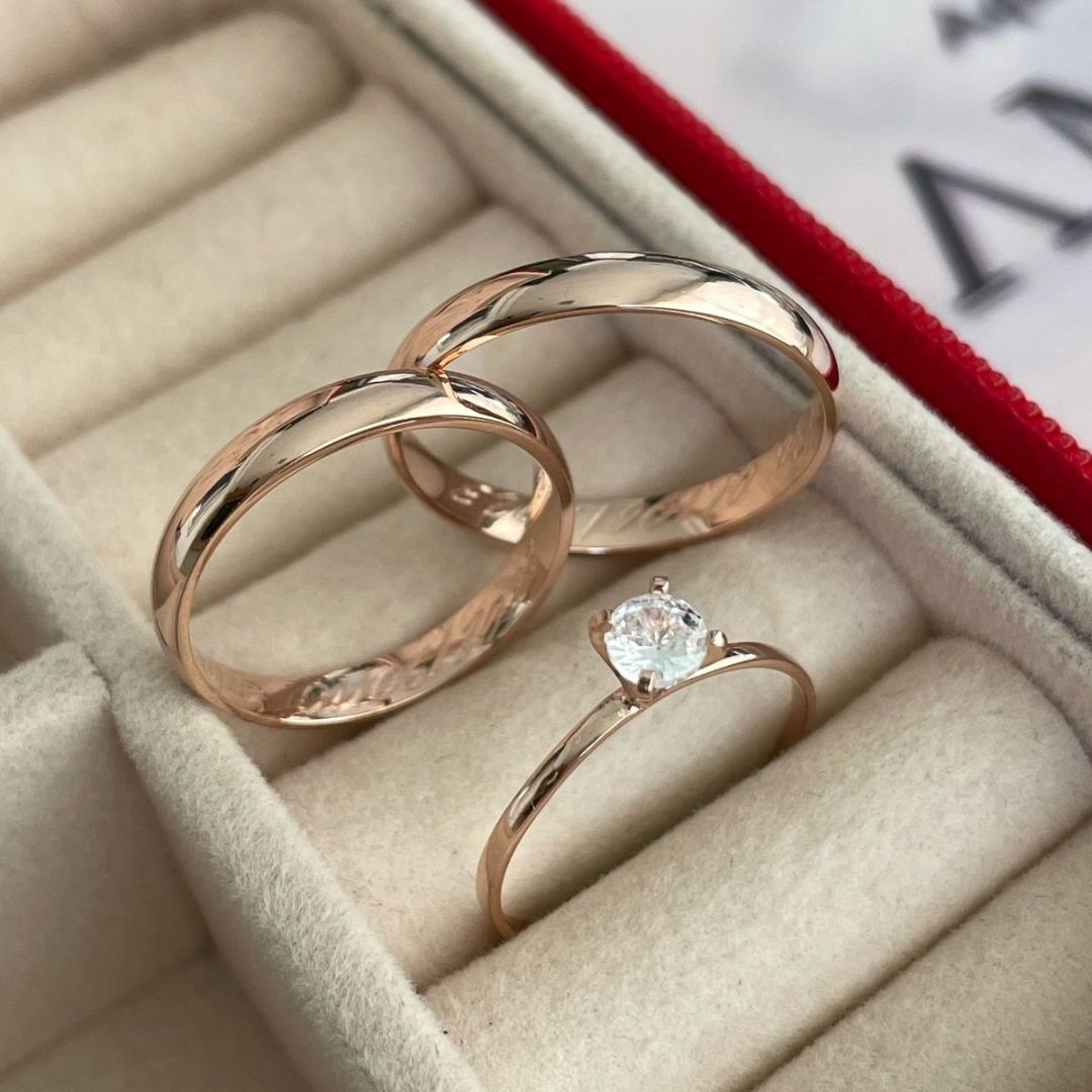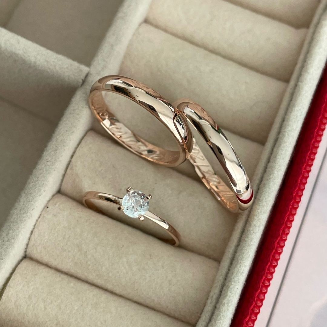 "As alianças banhadas a ouro rose combinam elegância e romantismo, oferecendo um brilho suave e sofisticado. Uma escolha perfeita para casais que buscam simbolizar o amor eterno com uma joia refinada e atemporal."