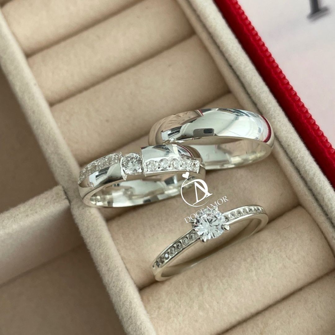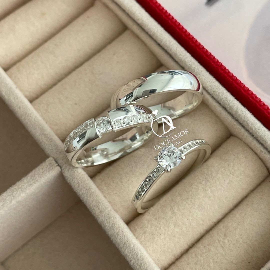 Detalhes: 15 pedras de zircônia no aro feminino (meia volta) + 1 pedra flutuante