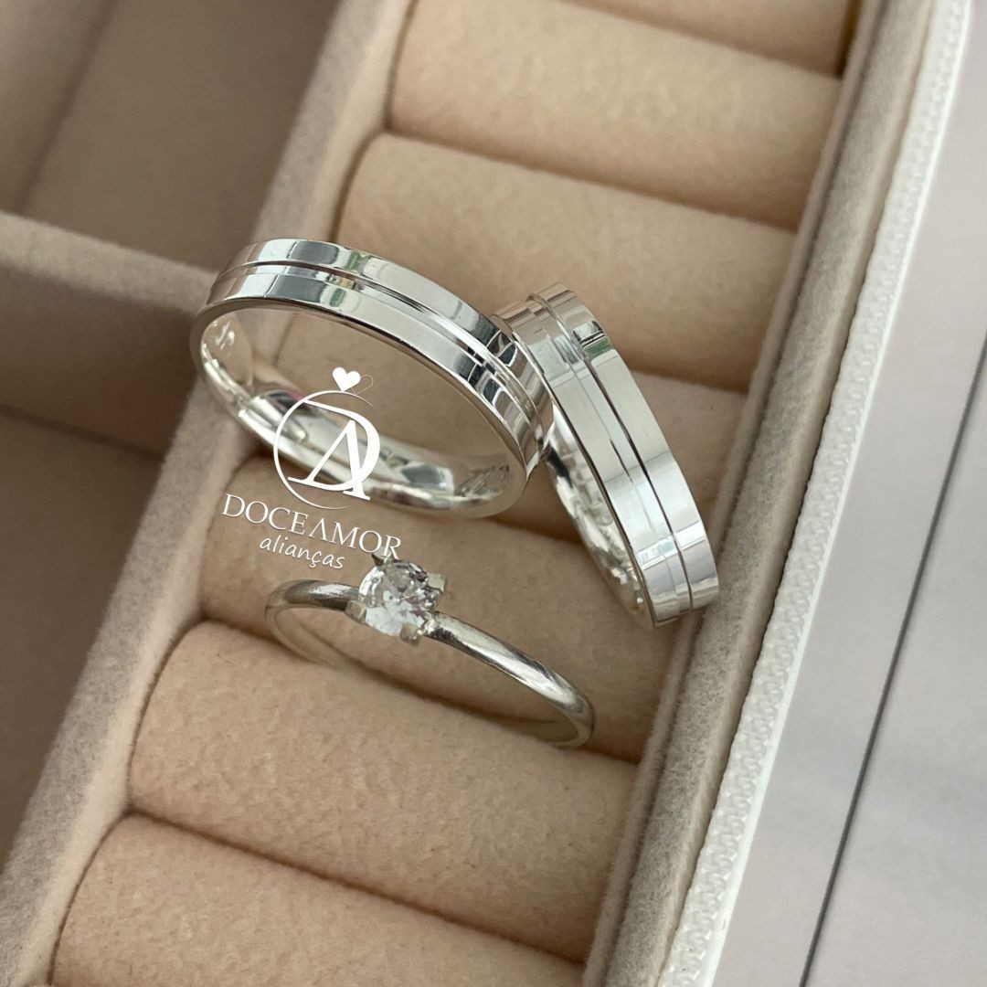 Alianças em Prata 950 - Estela - 4mm - Solitário Tradicional
