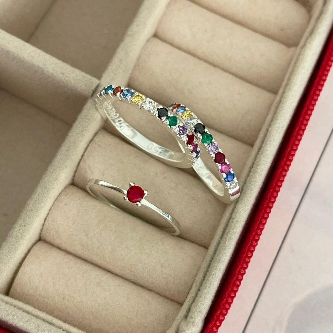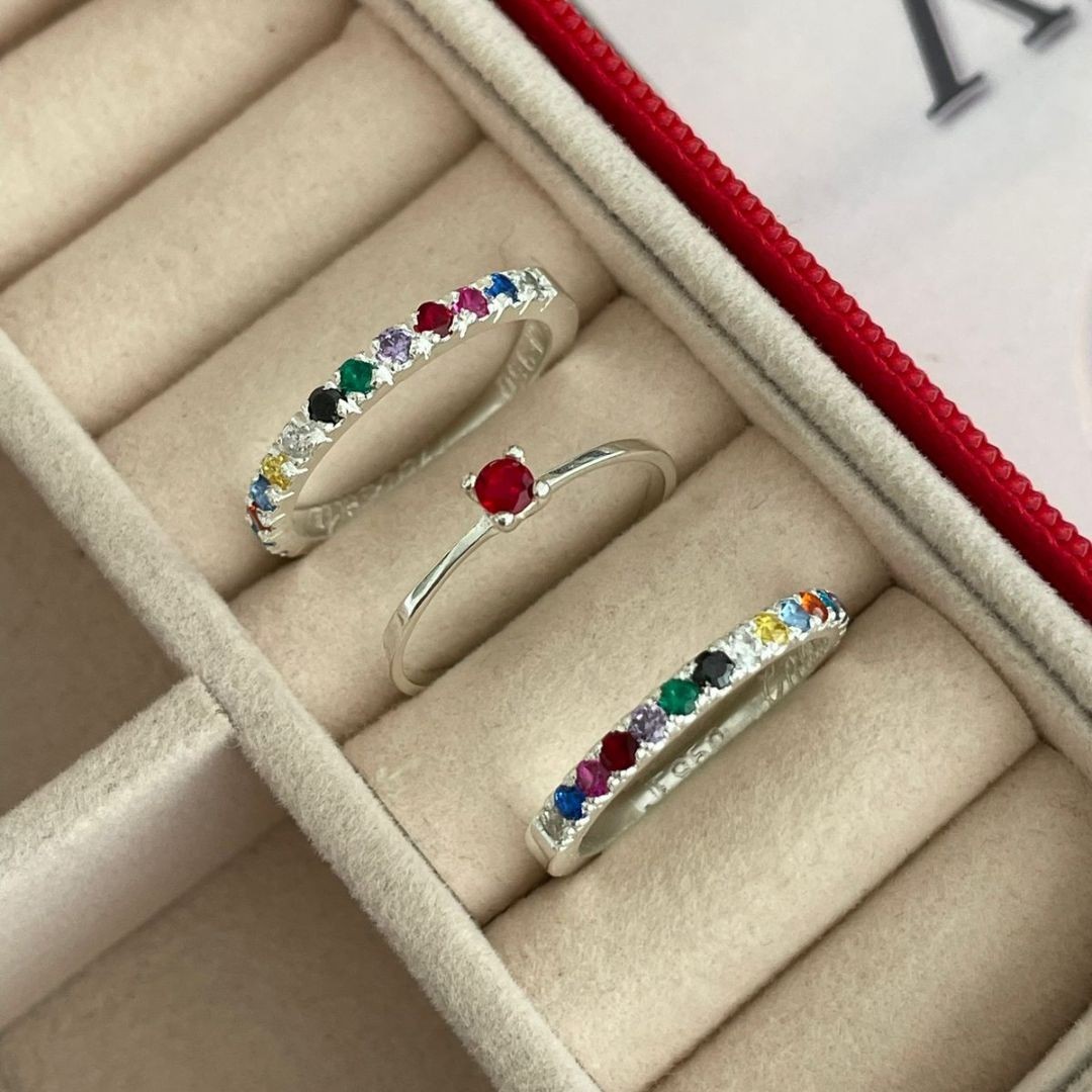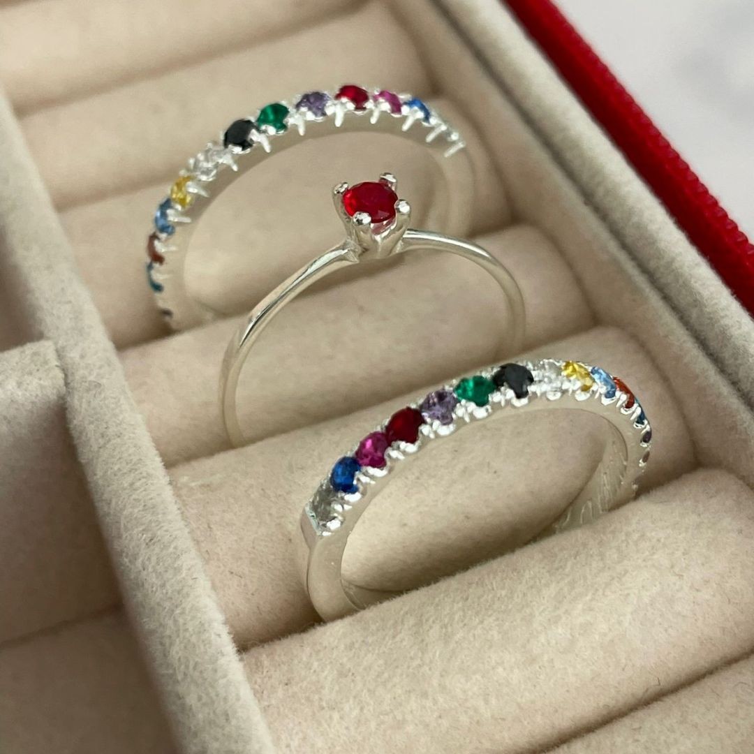Detalhes: 15 pedras de zircônias em cada aro (branco, azul escuro,rosa pink ,vermelho, roxo, verde, preto, branco, amarelo, azul claro, laranja, azul turquesa, roxo, rosa claro, branco)