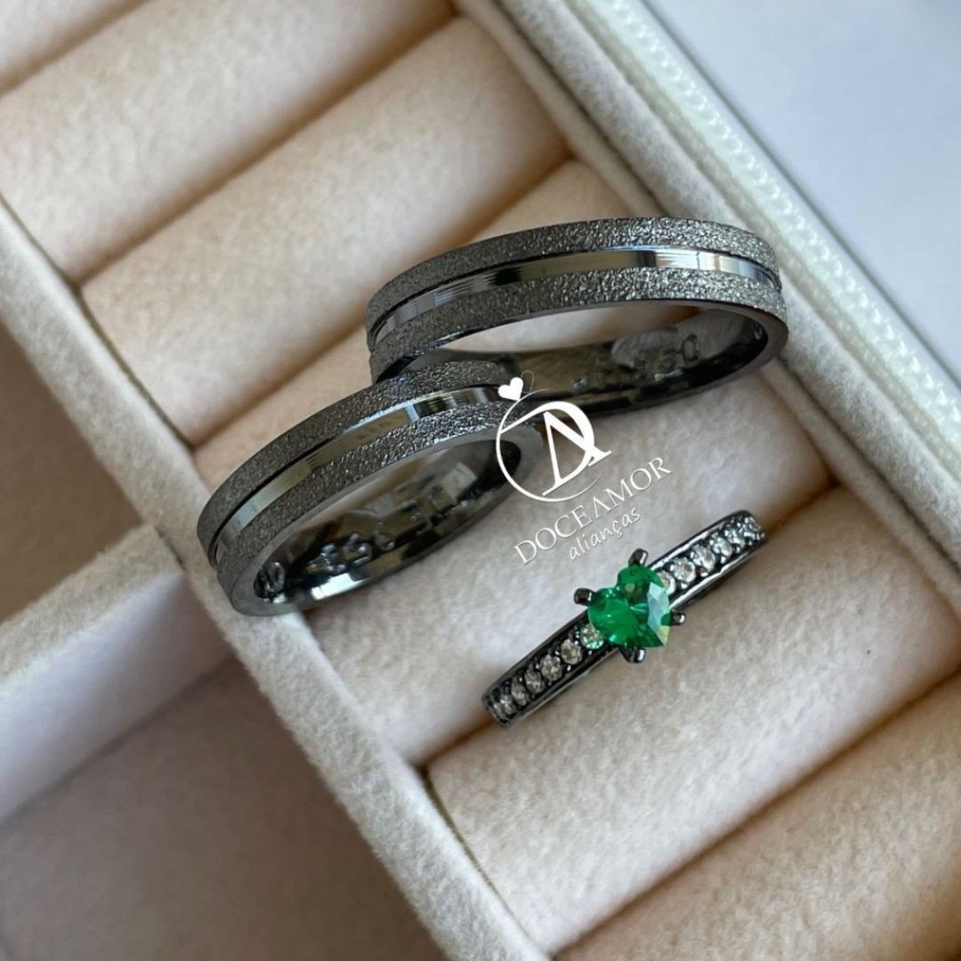 As alianças banhadas em ródio negro destacam-se pela elegância moderna e ousada. Sua tonalidade escura traz um ar de sofisticação e exclusividade, ideal para quem busca um estilo único e contemporâneo, sem abrir mão do brilho refinado.