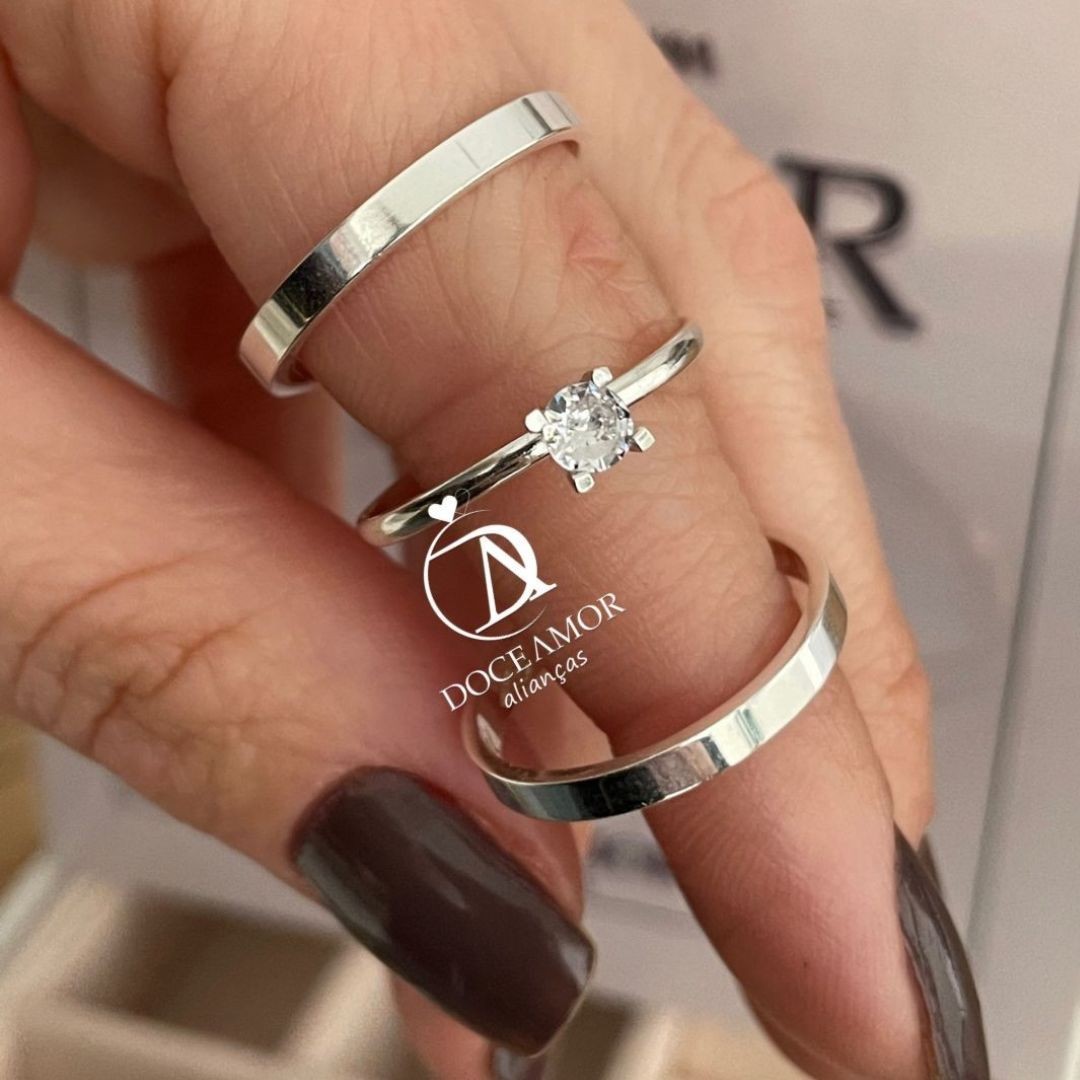 Alianças em Prata 950 - Selene - 2mm - Solitário Tradicional de Brinde