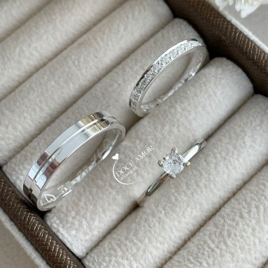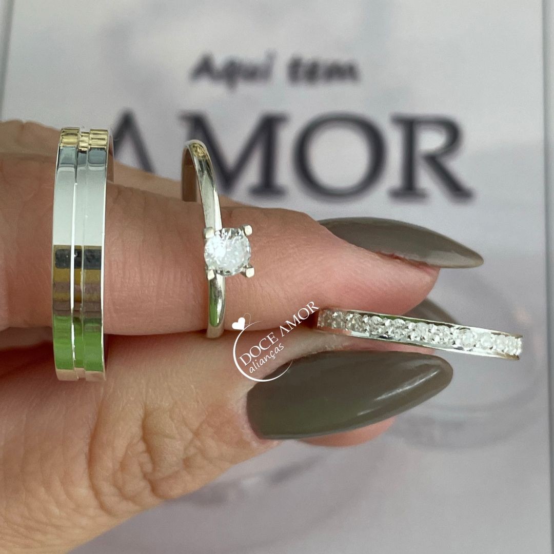 Detalhes: 15 pedras de zircônias na aliança feminina (Meia Volta)