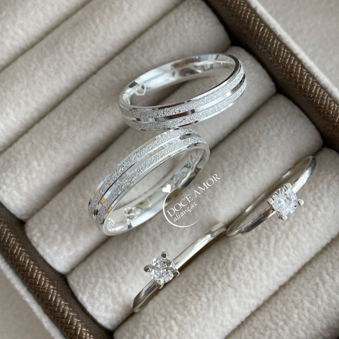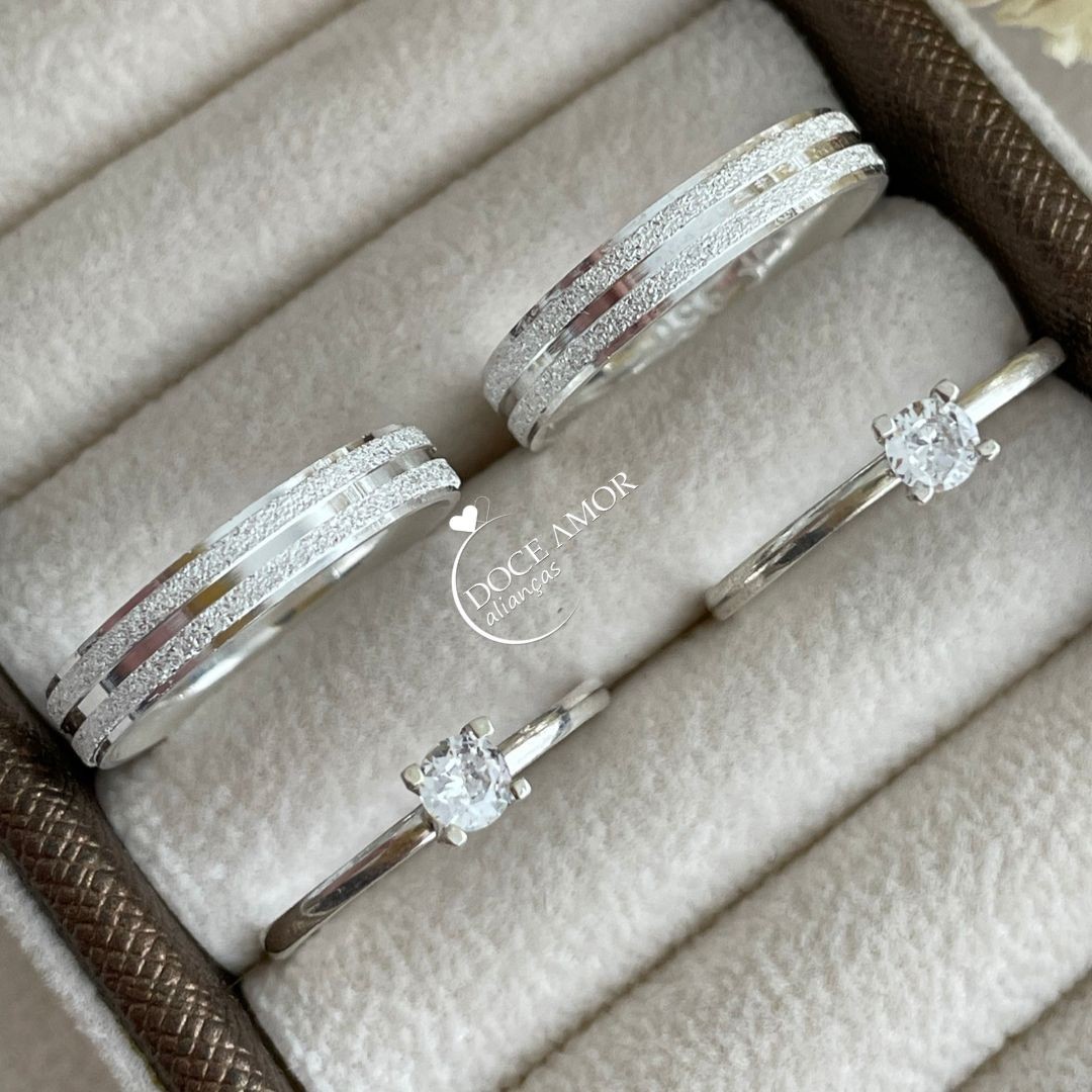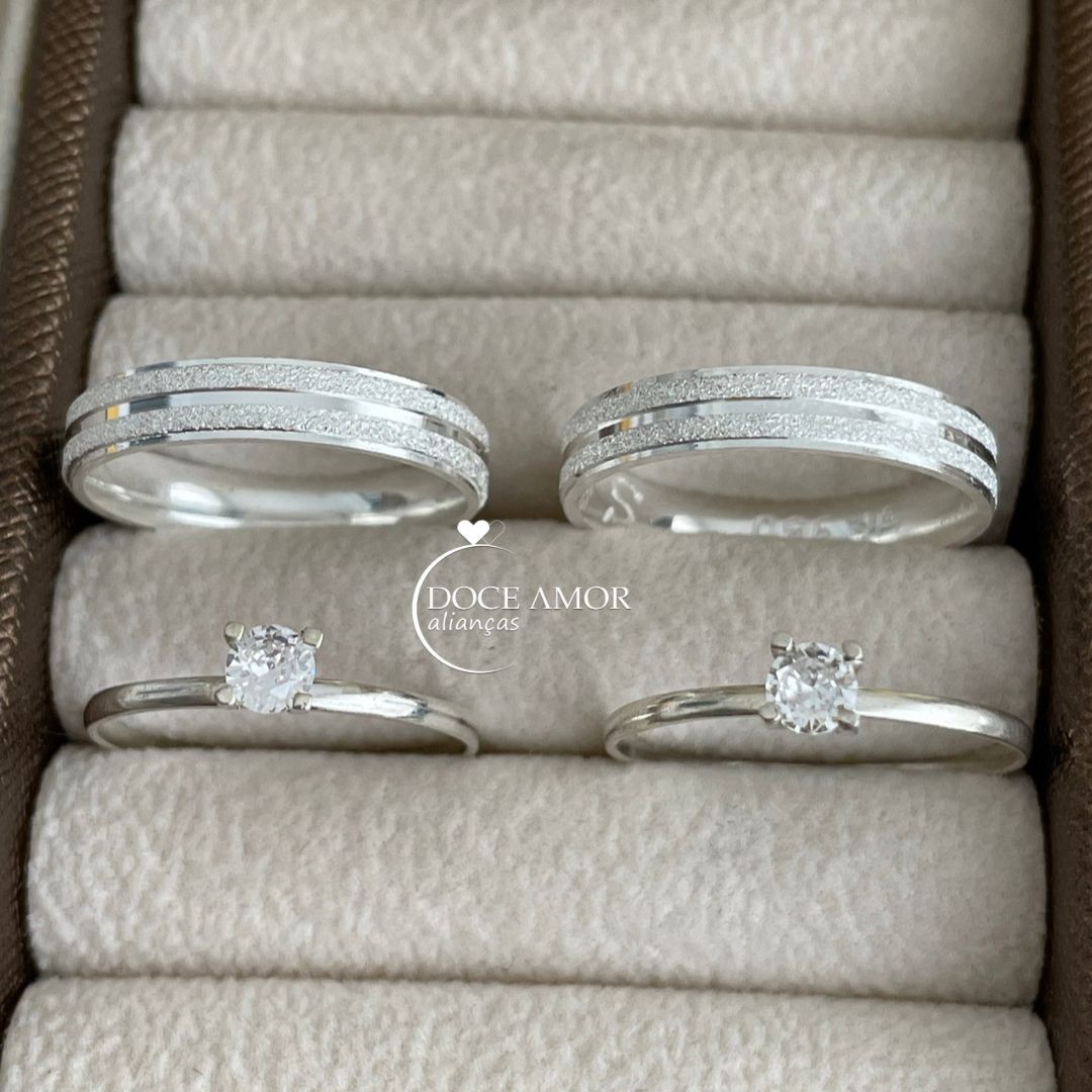 Par de Alianças em Prata 950- 4mm – Modelo: DA-011-3 – Solitário Tradicional