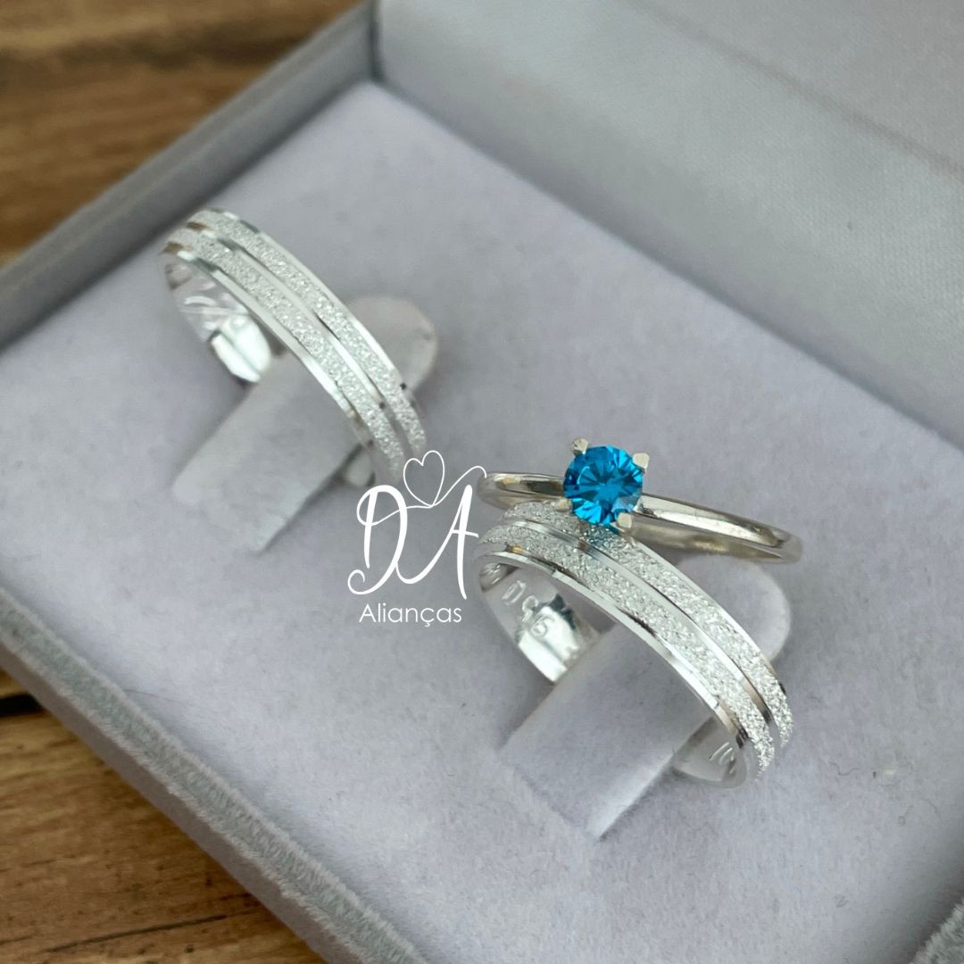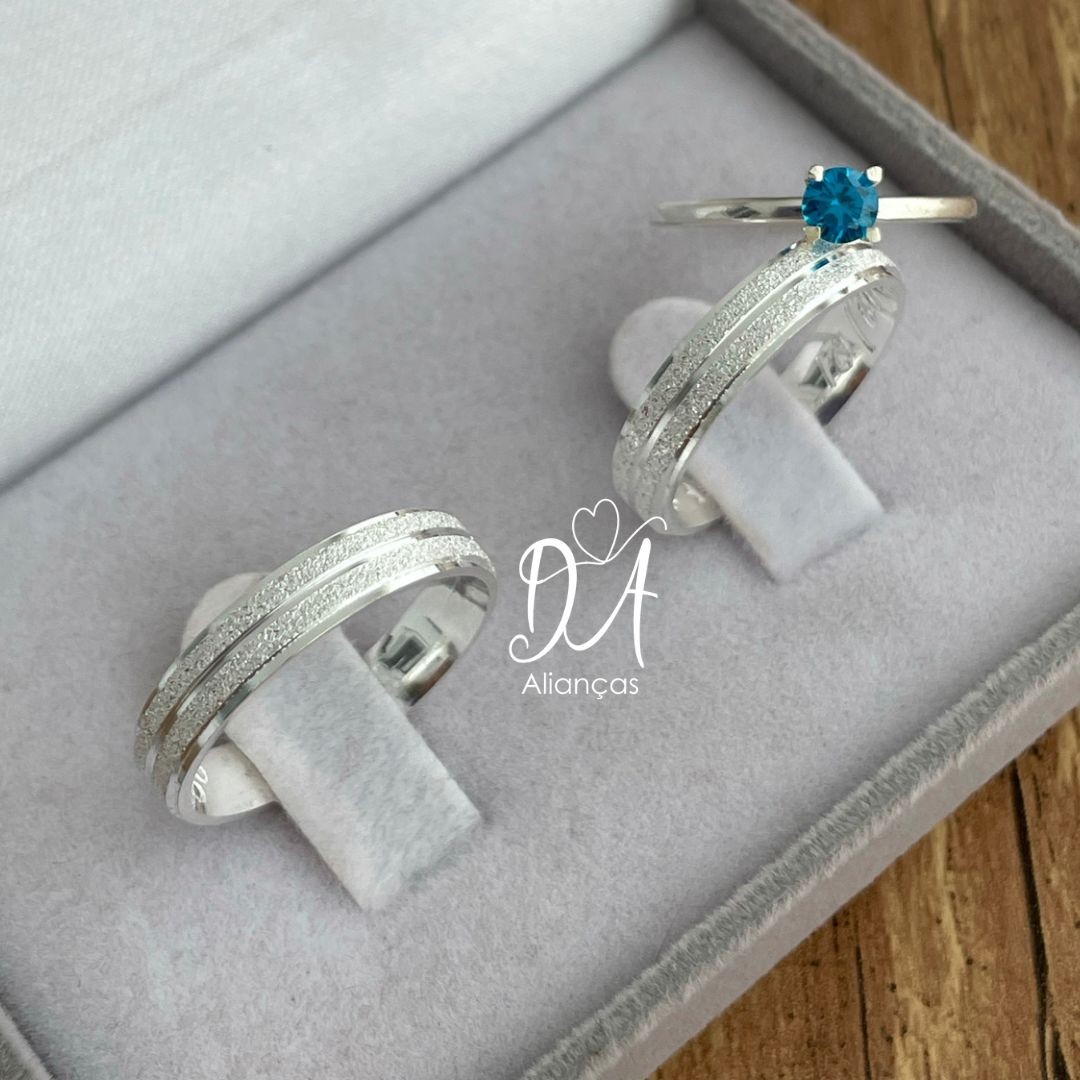 Par de Alianças em Prata 950- 4mm – Modelo: DA-011 – Solitário Tradicional