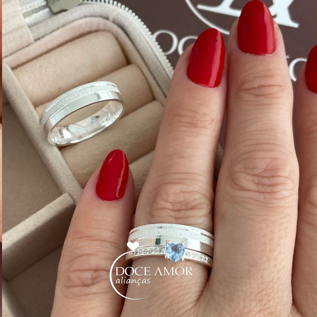 Par de Alianças em Prata 950 5mm Modelo: DA-300-2 Solitário Ellegance